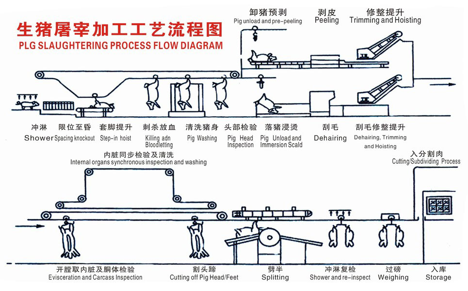 江蘇龍一諾機械制造有限公司        本公司配備先進的計算機設計(CAD)及其管理系統,并擁有雄厚的技術力量和經濟基礎,擁有一批專業的屠宰生產線設備技術人員和一批經驗豐富的屠宰設備安裝施工隊伍人員??梢愿鶕蛻舻男枨螅瑸榭蛻粼O計制造先進的、不同檔次的屠宰、分割流水線設備。公司堅決遵循“以質量求生存,以信譽求發展”的生存理念,切實履行我們的質量、服務承諾